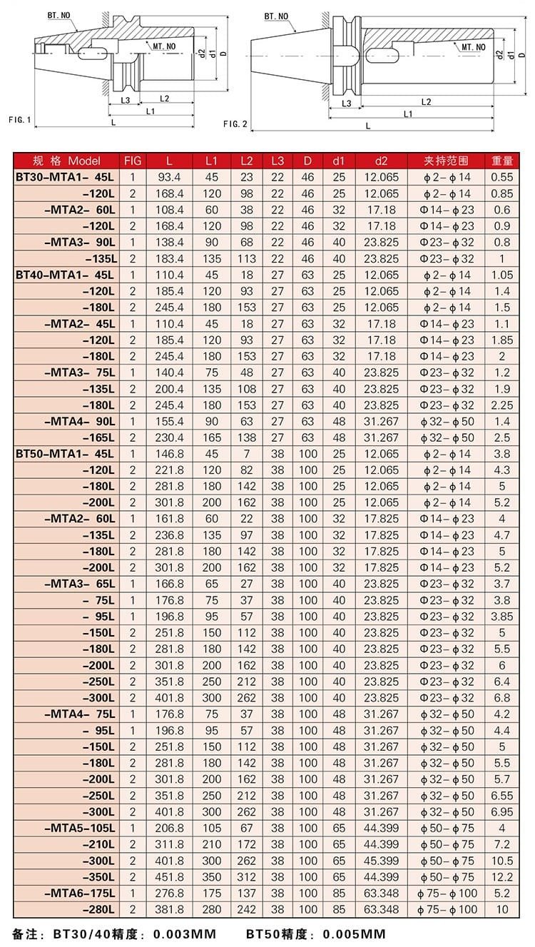 BT-MTA Morse Taper Tool Holder with Flat Tail