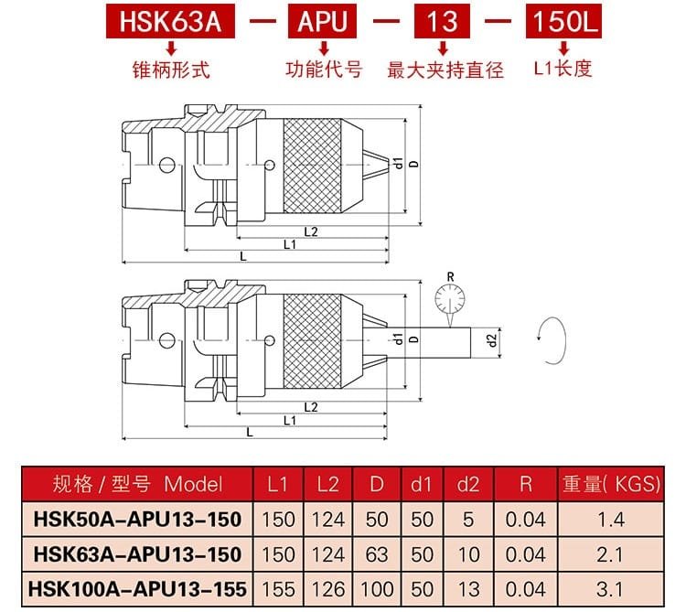HSK-APU Drill Chuck Holder